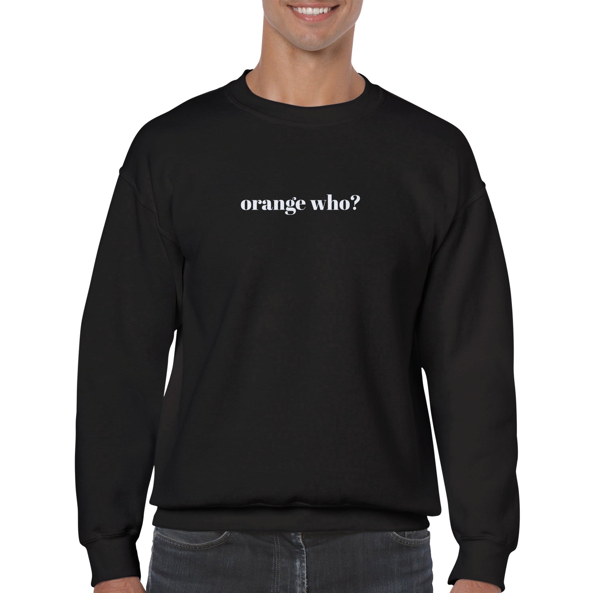 Letar du efter en rolig och självsäker t-shirt som förstår dina kunders spraytan dilemma? Vår "Orange Who?" Sweatshirt är den ultimata klädseln för Er som vet att självförtroende och ett fantastiskt utseende går hand i hand.